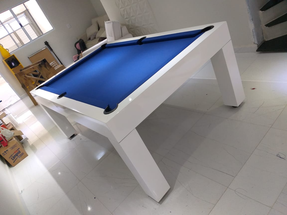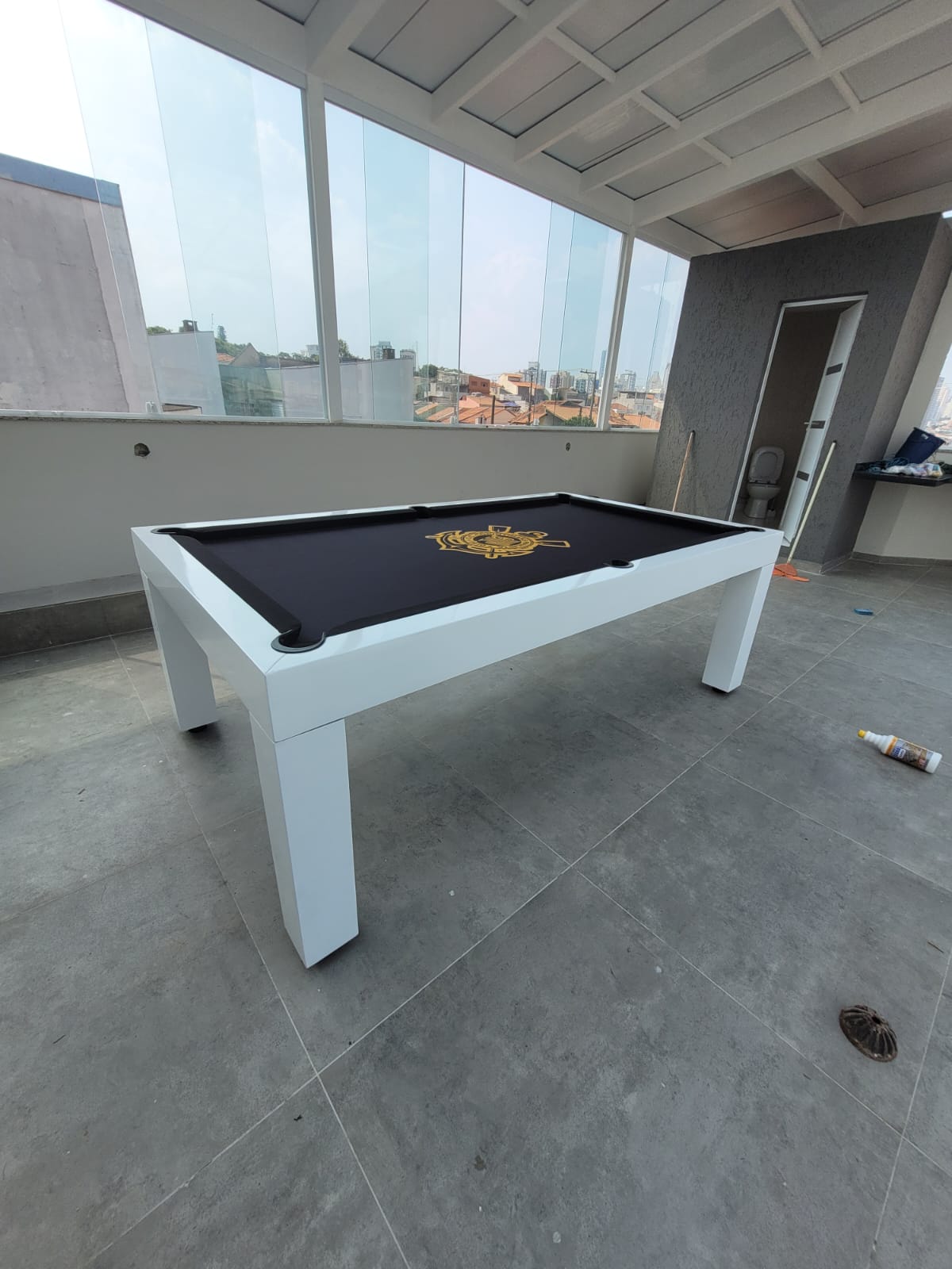 Mesa de bilhar e jantar – Modelo Premium – Cor branco brilho