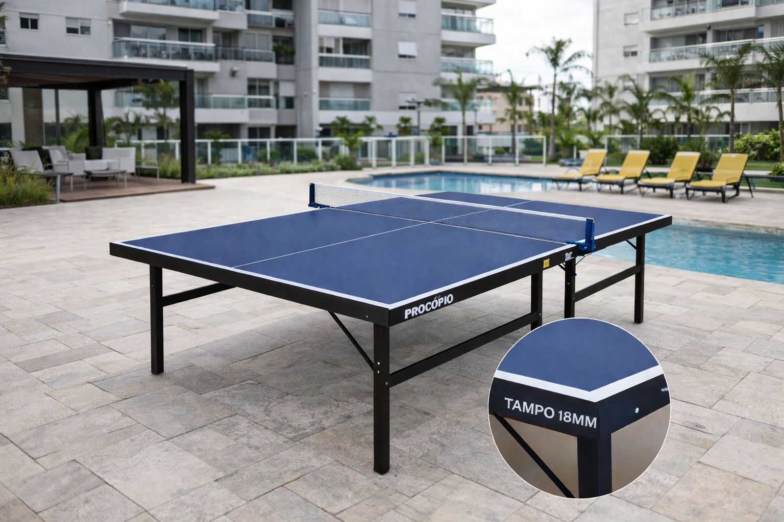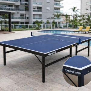 A Mesa de Ping Pong Oficial com tampo em MDF de 18mm foi desenvolvida para oferecer maior resistência, estabilidade e excelente desempenho de jogo, sendo ideal para condomínios, escolas, empresas e áreas de lazer de uso coletivo.