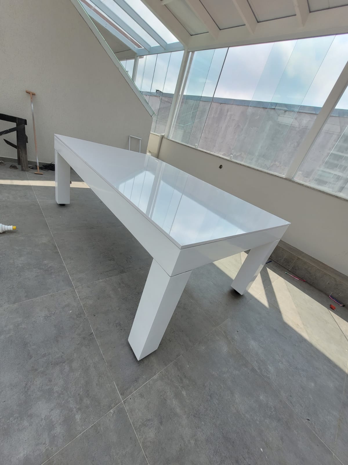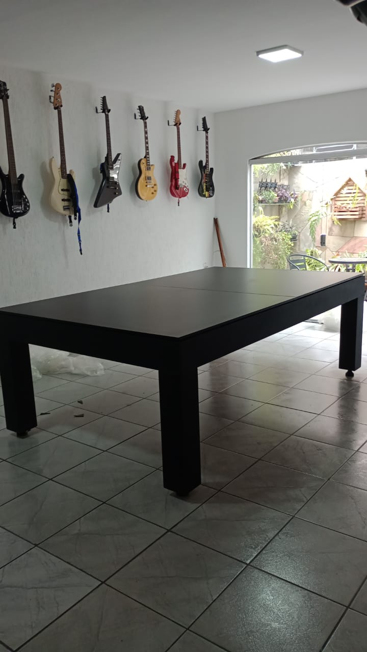 Fabricada com estrutura reforçada, essa mesa conta com pés robustos, que aumentam a estabilidade e absorvem melhor as vibrações durante o jogo. O acabamento recebe pintura PU de alto padrão, garantindo maior durabilidade, resistência à umidade e fácil manutenção, ideal para ambientes integrados ou semiabertos.