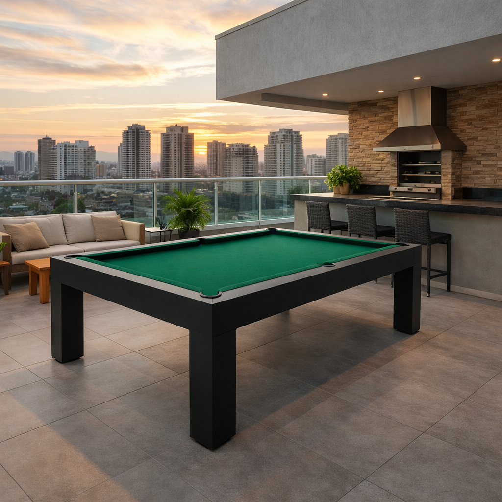A Mesa de Sinuca Premium Bilhares Mercedes foi desenvolvida para quem busca design sofisticado, resistência estrutural e jogabilidade profissional, mesmo em ambientes como terraços de apartamento e áreas gourmet.